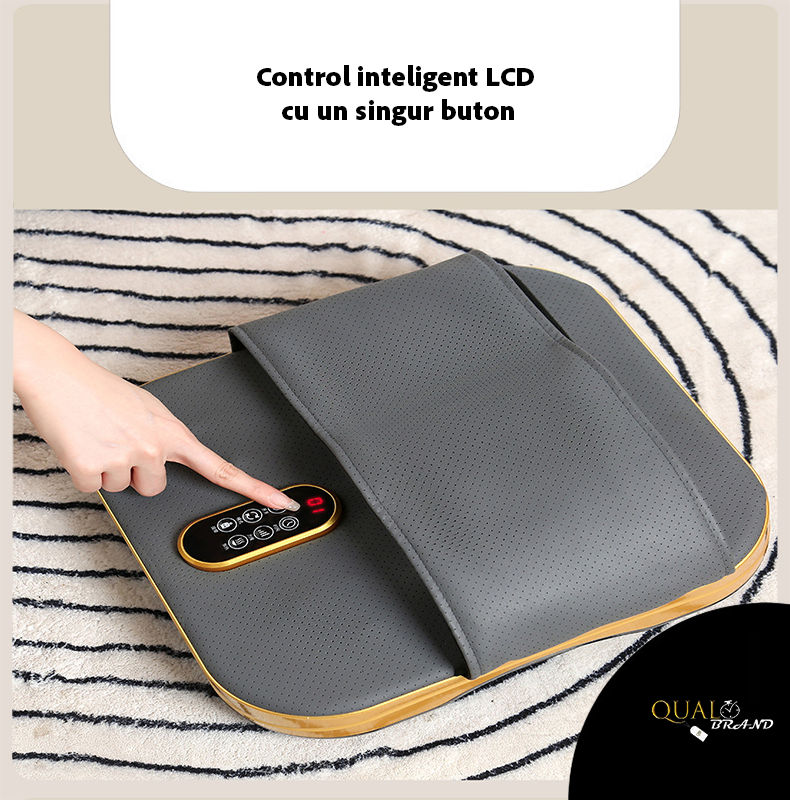 Aparatul de Masaj Picioare QUAL BRAND® vine in ajutorul tau cu un design ergonomic, 9 trepte de viteza ajustabile oricand doresti pentru a te bucura de masajul tau personalizat, 3 moduri de masaj selectabile si functie de masaj cu incalzire pe 2 trepte.