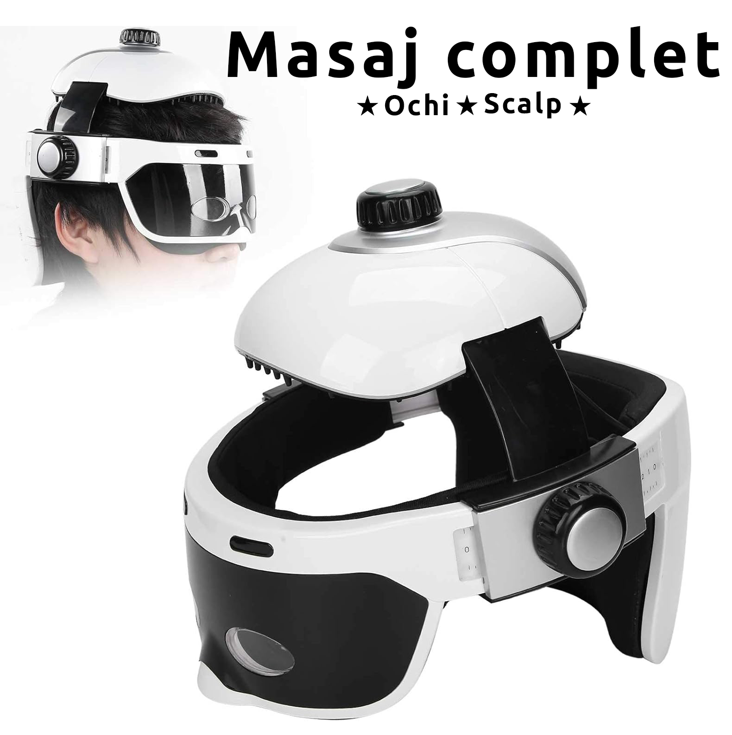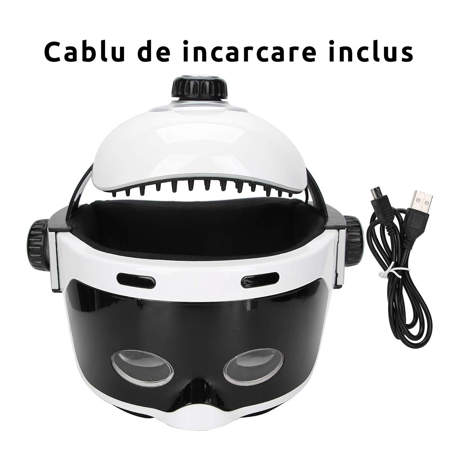Dispozitiv de masaj pentru cap de tip casca electrica cu compresie calda si functie de masaj ocular inteligent, putere 5W, tensiune 5V, pana la 42℃, interior cu captuseala moale, din ABS, Alb-Negru