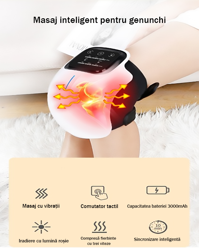 In plus, dispozitivul de masaj pentru genunchi este usor de utilizat si beneficiaza de un design intuitiv, care permite accesul rapid la toate functiile si setarile dispozitivului. Aparatul poate fi utilizat acasa sau la birou, in timpul activitatilor zilnice, pentru a calma durerea si a imbunatati mobilitatea genunchilor.