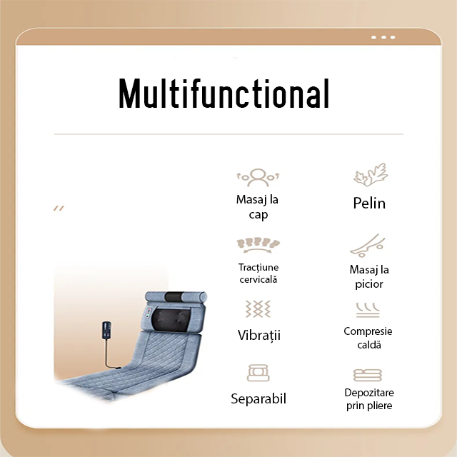 o functie de incalzire pentru a oferi o experienta de masaj relaxanta si terapeutica. De asemenea, design-ul ergonomic al masajului se potriveste cu usurinta pe orice pat sau canapea.