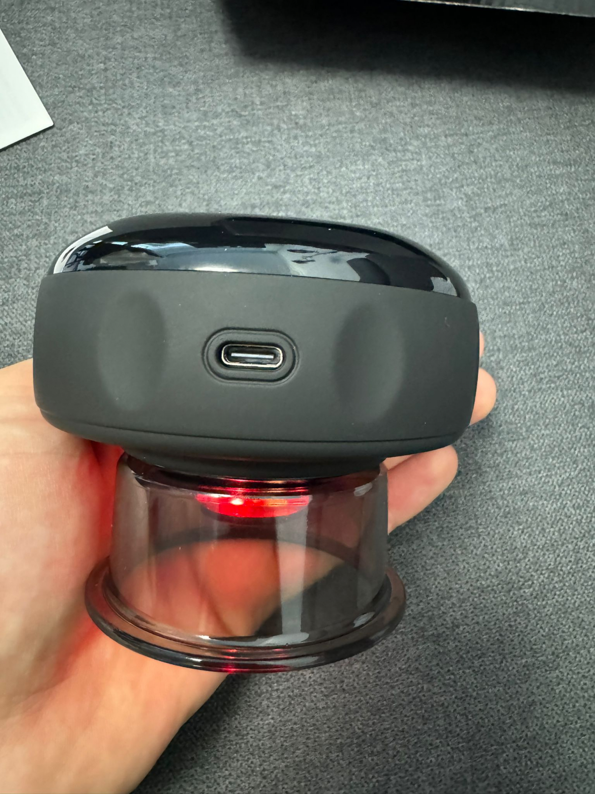 Dispozitiv pentru masaj cu functie inteligenta de cupping, baterie incorporata de 1800mAh, 12 viteze cu mod de eliberare a presiunii, din material ABS rezistent, Negru